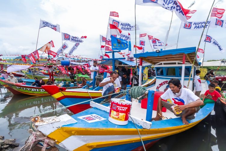 SERANG, WT – Peringati Hari Nelayan Internasional, Nippon Paint cat ratusan kapal nelayan. Kegiatan ini sekaligus di Kepuh Margagiri, Kampung Cikubang, Desa Argawana, Kecamatan Puloampel, Kabupaten Serang.