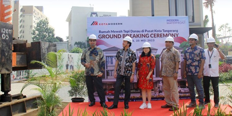TANGERANG, WT – PT Modernland Realty Tbk. menggelar peletakkan batu pertama (groundbreaking) sebagai penanda mulai dibangunnya proyek Modern Waterfront Residence, yakni sebuah cluster hunian berpanorama danau yang berlokasi di area terdepan perumahan skala kota (township) KotaModern, Kota Tangerang pada Kamis, (25/5/2023).