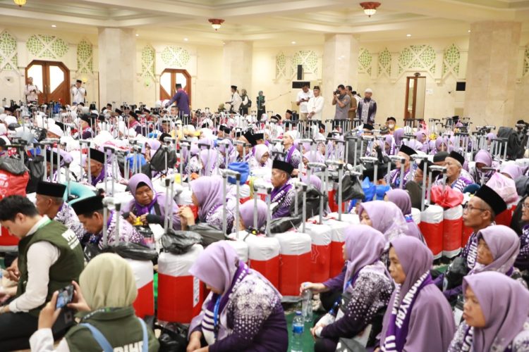 TANGERANG, WT – Sebanyak 384 jamaah haji kloter pertama asal Kabupaten Tangerang yang tergabung dalam Kloter 07 JKG dilepas di Aula Masjid Agung Al-Amjad Puspem Tangerang pada Senin, (13/5/2024).