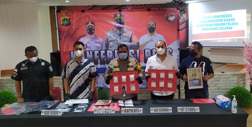 “Pada hari Selasa, (21/12/2021) di Pondok Aren, Tangsel, unit 1 Satres Narkoba Polres Tangsel melakukan pengungkapan narkotika jenis sabu sebanyak kurang lebih 1000 gram yang disita dari tersangka JL,” katanya di Mapolres Tangsel, Sabtu (25/12/2021).