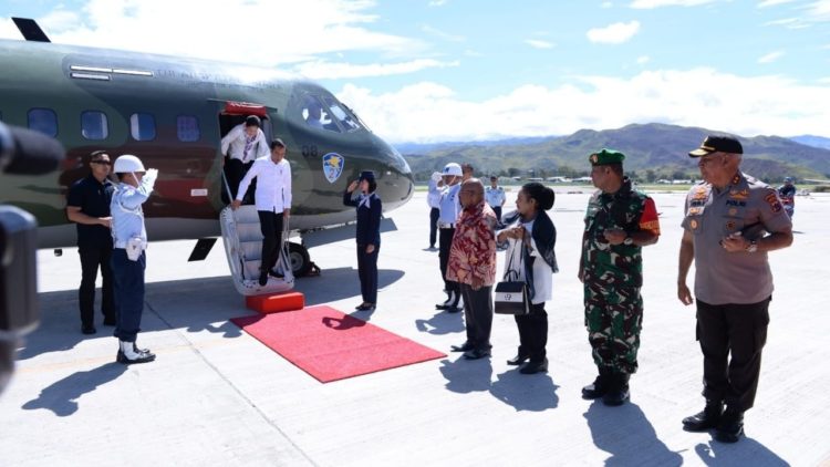 Setibanya di Bandara Wamena sekitar pukul 09.17 WIT, Presiden Jokowi akan meninjau panel tentang rencana pengembangan 5 bandara di Papua.