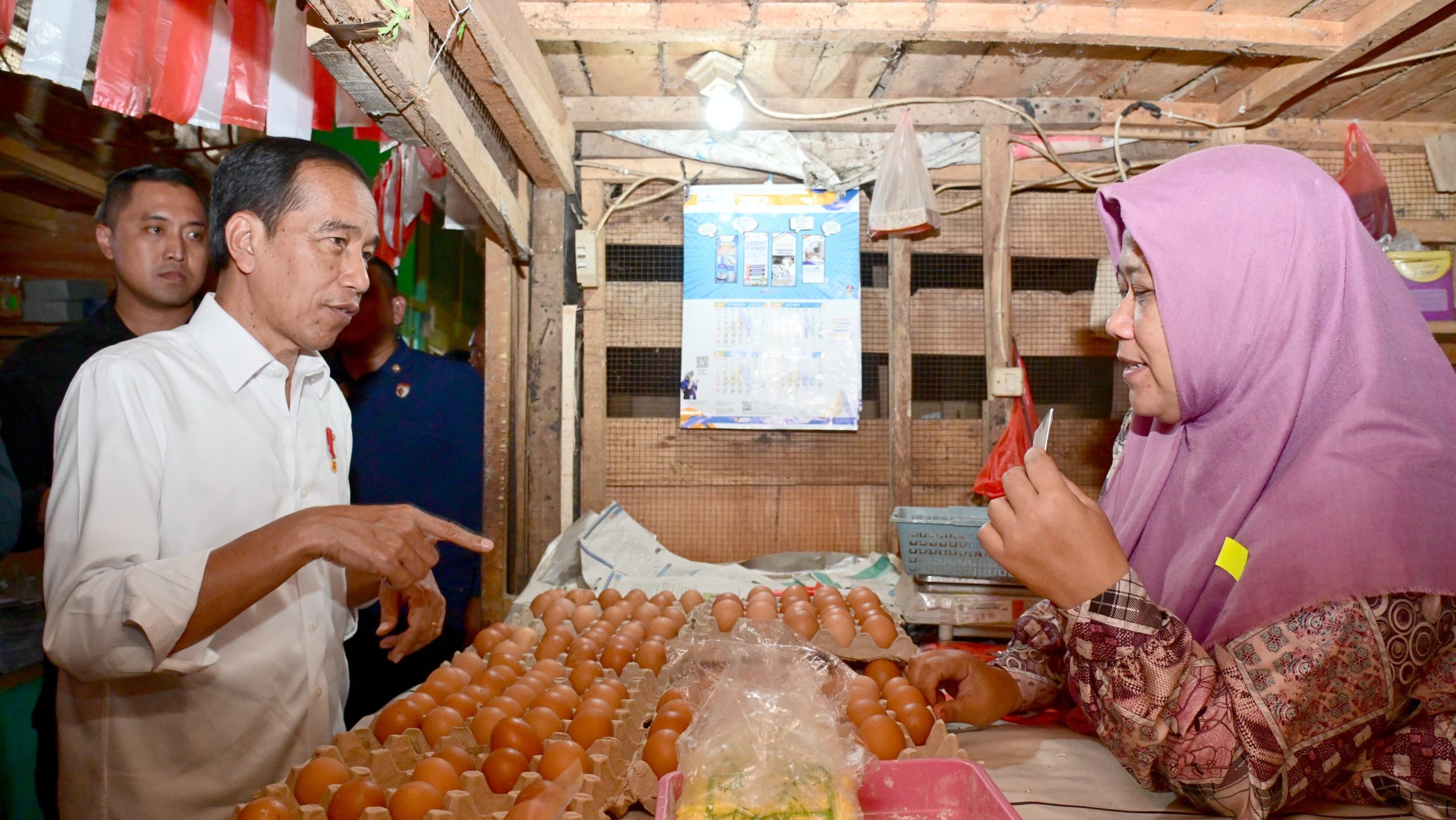 Presiden Joko Widodo meninjau harga bahan pangan di Pasar Citeko, Kabupaten Purwakarta, Provinsi Jawa Barat, pada Kamis, 9 November 2023.