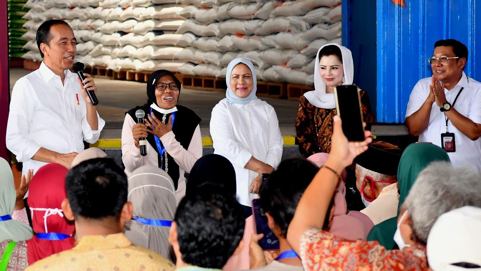 Selain meninjau dan memastikan ketersediaan cadangan beras, Presiden Jokowi turut menyapa masyarakat yang hadir. Presiden ingin memastikan penyaluran bantuan pangan cadangan beras pemerintah (CBP) sejumlah 10 kilogram berjalan dengan baik.