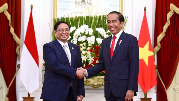 Presiden Joko Widodo melakukan pertemuan bilateral dengan Perdana Menteri Vietnam Pham Minh Chinh di Istana Merdeka, Jakarta, pada Senin, 4 September 2023. Dalam pertemuan tersebut, kedua pemimpin mendorong segera direalisasikannya kerja sama di bidang maritim dan perikanan antara Indonesia dengan Vietnam.