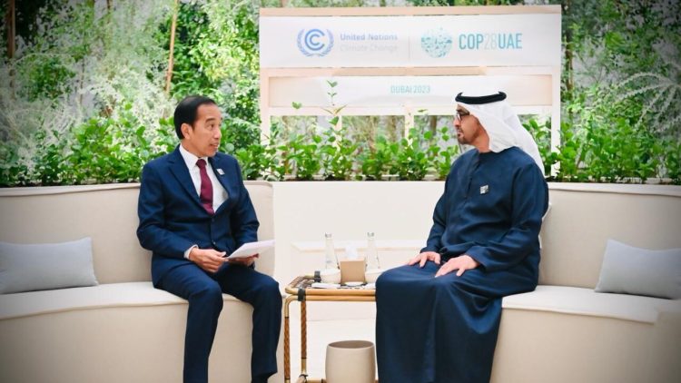 Presiden Joko Widodo bertemu empat mata dengan Presiden Persatuan Emirat Arab (PEA) Sheikh Mohamed bin Zayed Al Nahyan (MBZ) di Leadership Paviliun, Expo City Dubai, pada Jumat, 1 Desember 2023. Mengawali pertemuan tersebut, Presiden Jokowi menyampaikan apresiasi kepada Presiden MBZ atas terselenggaranya COP28 dibawah presidensi PEA.