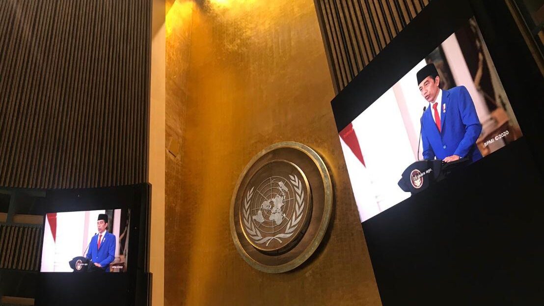 Presiden Joko Widodo menyerukan tiga pemikiran dalam pidatonya pada sesi debat umum Sidang Majelis Umum ke-75 Perserikatan Bangsa-Bangsa (PBB). Pidato tersebut disampaikan secara virtual seperti disiarkan di YouTube Sekretariat Presiden pada Rabu, 23 September 2020.