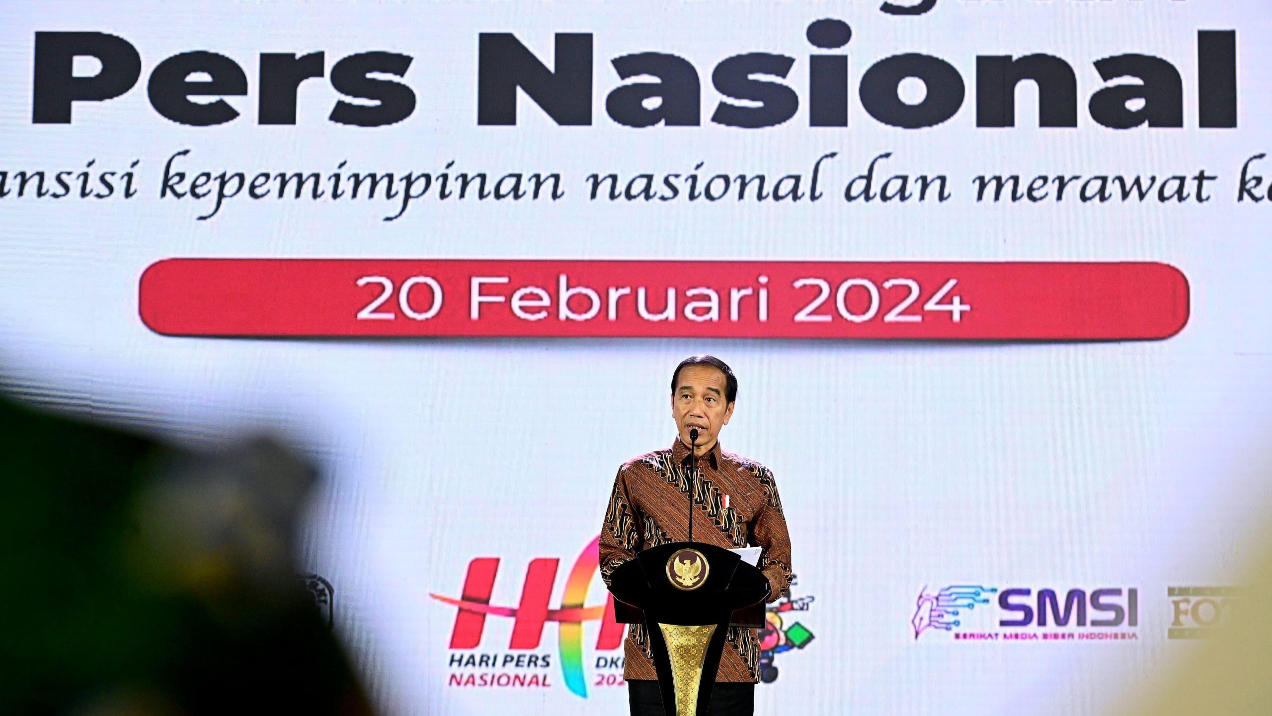 Presiden Joko Widodo menghadiri puncak peringatan Hari Pers Nasional Tahun 2024 yang digelar pada Selasa, 20 Februari 2024, di Ecoventional Hall, Ecopark, Ancol, Jakarta Utara. Dalam sambutannya, Kepala Negara menyampaikan apresiasi terhadap seluruh insan pers di Tanah Air yang telah konsisten menemani masyarakat Indonesia dalam kehidupan berdemokrasi.