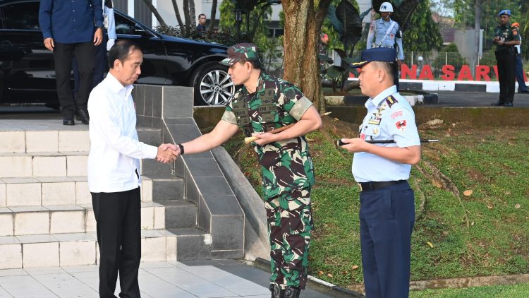 Tampak melepas keberangkatan Presiden di Pangkalan TNI AU Atang Sendjaja, Kabupaten Bogor, adalah Danrem 061/Surya Kencana Brigjen TNI Faisol Izuddin Karimi serta Dan Wing 4 Lanud Atang Sendjaja Kolonel Pnb Asep Wahyu Wijaya.
