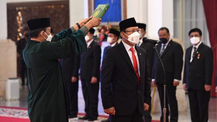 Presiden Joko Widodo melantik Muhamad Mardiono sebagai Utusan Khusus Presiden Bidang Kerja Sama Pengentasan Kemiskinan dan Ketahanan Pangan di Istana Negara Jakarta, pada Rabu, 23 November 2022.