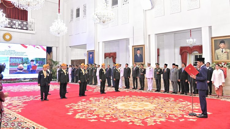 “Pada hari ini, Rabu tanggal 22 bulan November tahun 2023, Saya Presiden Republik Indonesia dengan ini secara resmi melantik saudara-saudara dalam keanggotaan Dewan Pimpinan Pusat dan Dewan Pertimbangan Pusat Legiun Veteran Republik Indonesia periode tahun 2022-2027,” ujar Presiden membacakan naskah pelantikan.