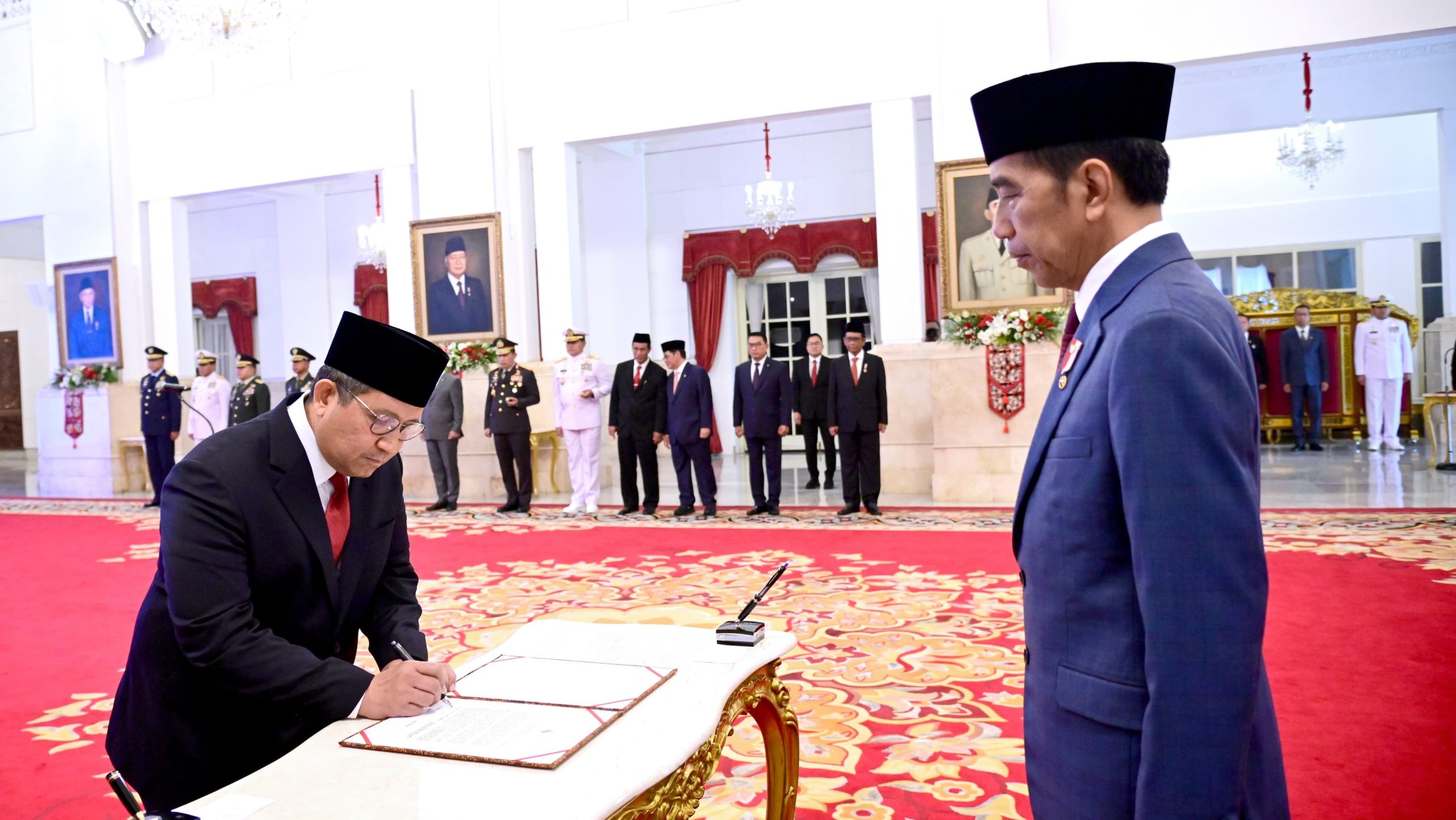 “Saya bersumpah/berjanji bahwa saya untuk diangkat menjadi duta besar luar biasa dan berkuasa penuh akan setia kepada Undang-Undang Dasar Negara Republik Indonesia Tahun 1945 serta akan menjalankan segala peraturan perundang-undangan dengan selurus-lurusnya demi darmabakti saya kepada bangsa dan negara,” ujar Presiden Joko Widodo saat mendiktekan penggalan sumpah jabatan kepada para duta besar.