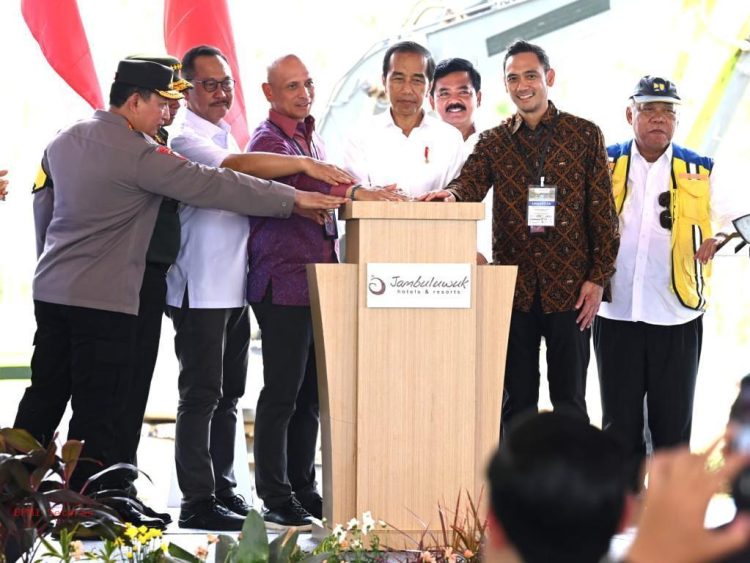 “Dengan mengucap bismillahirahmanirrahim pada siang hari ini peletakan batu pertama (groundbreaking) Jambuluwuk Nusantara Hotel secara resmi saya nyatakan dimulai,” ucap Presiden dalam sambutannya.
