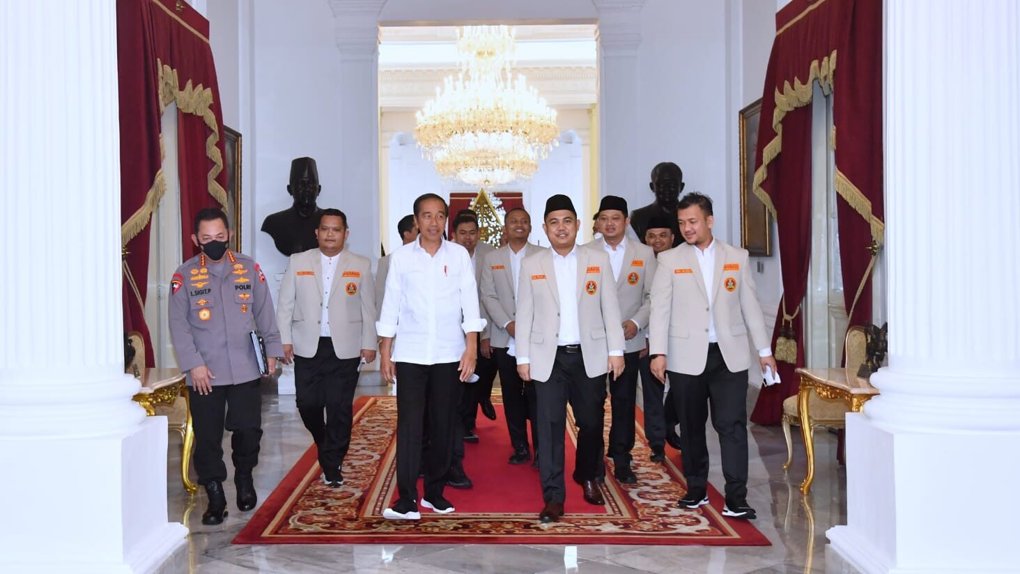 Turut mendampingi Presiden dalam pertemuan tersebut Kapolri Jenderal Polisi Listyo Sigit Prabowo. Sementara itu, tampak hadir dalam pertemuan tersebut antara lain Ketua Umum PP Pemuda Muhammadiyah Dzulfikar Ahmad Tawalla, Sekretaris Jenderal PP Pemuda Muhammadiyah Najih Prasetyo, Bendahara Umum PP Pemuda Muhammadiyah Machendra, dan sejumlah perwakilan PP Pemuda Muhammadiyah lainnya.