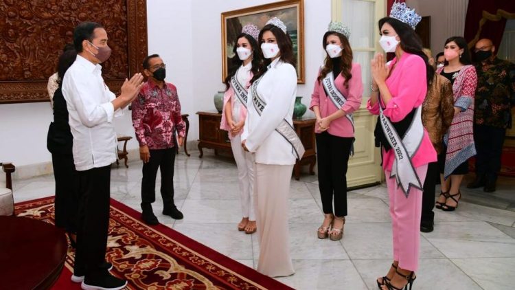 Presiden Joko Widodo menerima kunjungan Puteri Indonesia 2022 Laksmi Shari Suardana, Puteri Indonesia Lingkungan 2022 Cindy May McGuire, dan Puteri Indonesia Pariwisata 2022 Adinda Chresheilla di Istana Merdeka Jakarta, pada Senin, 30 Mei 2022. Dalam pertemuan tersebut, Presiden Jokowi meminta para Puteri Indonesia 2022 untuk ikut terlibat dalam Konferensi Tingkat Tinggi (KTT) G20 yang akan digelar di Bali pada November mendatang.