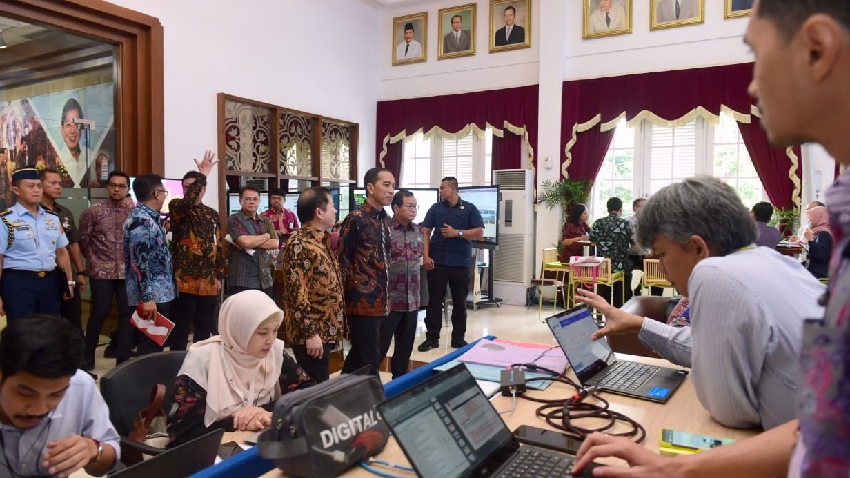 Presiden Joko Widodo pada hari ini, Kamis, 16 Januari 2020, meninjau integrated digital work (IDW) di kantor Kementerian Perencanaan dan Pembangunan Nasional (PPN)/Badan Perencanaan Pembangunan Nasional (Bappenas).