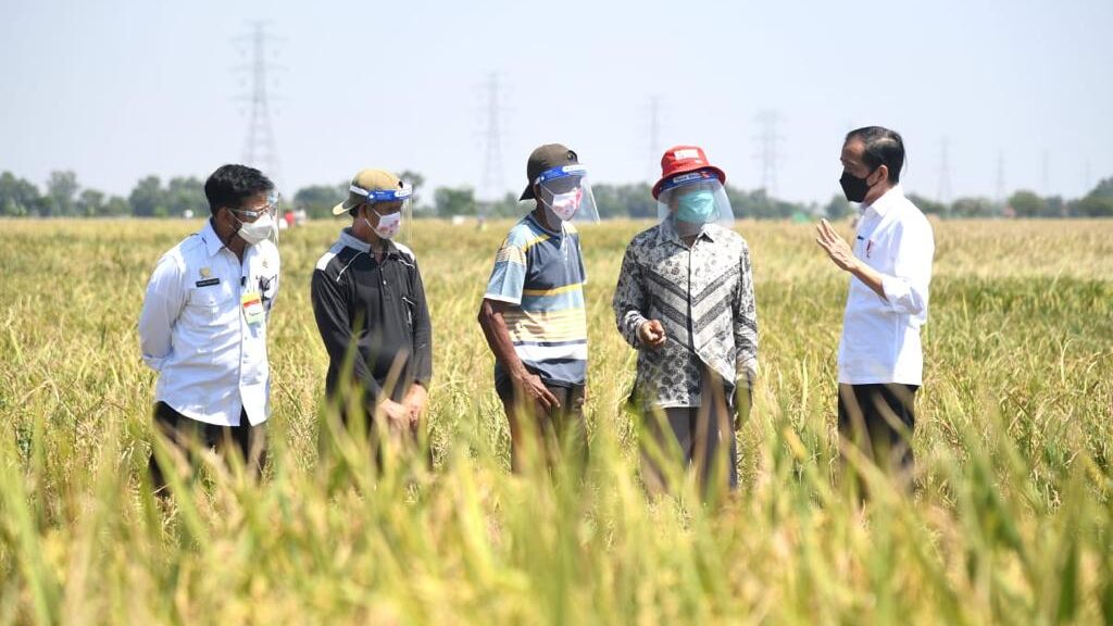 “Pagi hari ini saya berada di Desa Wanasari, Kabupaten Indramayu, Provinsi Jawa Barat, untuk melihat secara langsung panen yang dilakukan di sini,” ujar Presiden saat menyampaikan keterangan pers di lokasi panen.