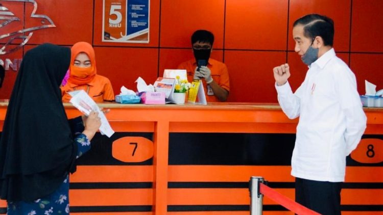 “Antreannya bagus, dengan jaga jarak yang baik. Semuanya pakai masker. Sebelum uangnya diberi pun tangan dibersihkan dengan hand sanitizer. Saya kira protokol-protokol kesehatan seperti itu yang harus kita jalankan,” kata Presiden.