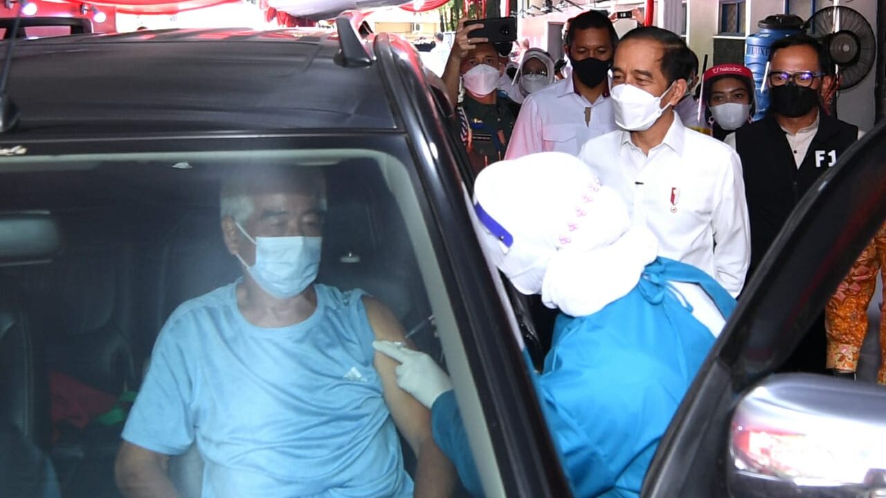 “Baru saja tadi saya melihat proses drive-thru vaksinasi yang dilakukan di Kota Bogor. Saya melihat semua berjalan dengan lancar dari mulai proses registrasi, pendaftaran, screening, kemudian penyuntikan vaksin semuanya berjalan dengan baik,” ujar Presiden yang memberikan keterangan selepas peninjauan.