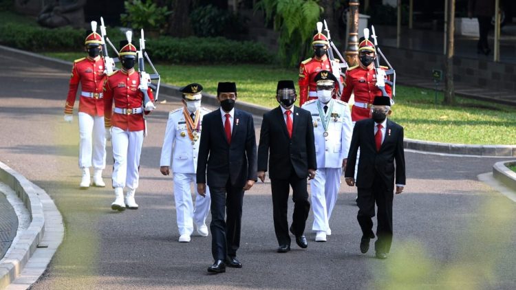 Pasangan gubernur dan wakil gubernur terpilih terlebih dahulu menerima petikan Surat Keputusan Presiden di Istana Merdeka, Jakarta. Keduanya kemudian melakukan prosesi kirab menuju Istana Negara bersama dengan Presiden Joko Widodo, Wakil Presiden Ma’ruf Amin, dan Menteri Dalam Negeri, Tito Karnavian.