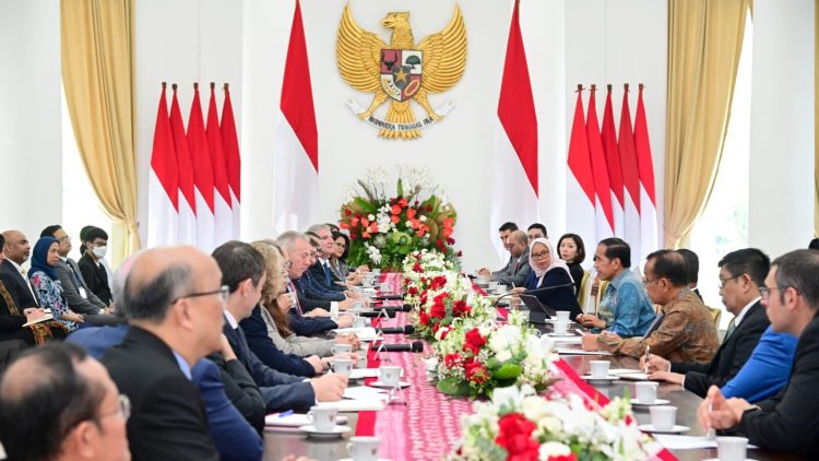 Presiden Joko Widodo menerima kunjungan delegasi dari US-ASEAN Business Council (US-ABC) di Istana Kepresidenan Bogor, Provinsi Jawa Barat, pada Kamis, 25 Mei 2023. Menteri Keuangan (Menkeu) Sri Mulyani menyampaikan bahwa pertemuan tersebut membahas berbagai kerja sama di bidang investasi dan hubungan perdagangan antara Amerika Serikat dan Indonesia.