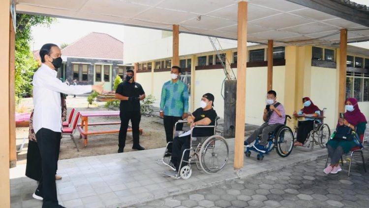 Presiden Joko Widodo melanjutkan kegiatan kunjungan kerjanya di Daerah Istimewa Yogyakarta (DIY) dengan meninjau kegiatan vaksinasi Covid-19 di SLB (Sekolah Luar Biasa) Negeri 1 Yogyakarta, Kabupaten Bantul, pada Jumat, 10 September 2021. Kegiatan vaksinasi ini dilaksanakan bagi sekitar 375 pelajar SLB.