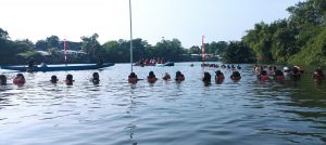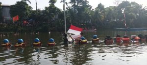 Upacara kenaikan bendera mengapung di HUT Kemerdekaan RI ke-17 di Situ Tujuh Muara, Pamulang. (IST)