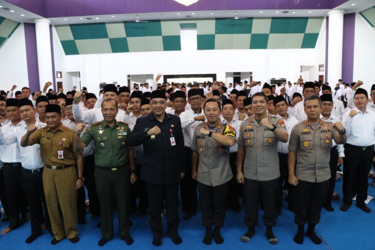 Bupati Tangerang Ahmed Zaki Iskandar, Kapolresta Tangerang, Kapolresta Tangsel, Kapolres Metro Tangerang turut hadir dalam deklarasi damai dan pembekalan wawasan kebangsaan bagi Calon Kepala Desa Serentak tahun 2019.