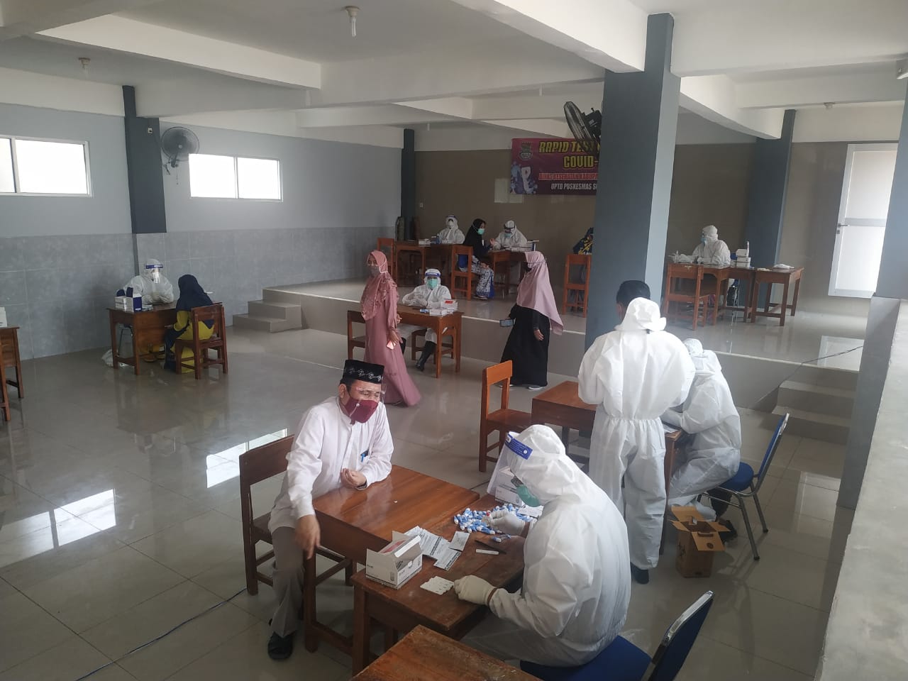 Rapid test yang digelar Dinas Kesehatan bersama Puskesmas Sukamulya untuk mentracing dan mencegah Covid-19. Pasalnya, salah satu santri di ponpes tersebut terkonfirmasi positif covid-19.