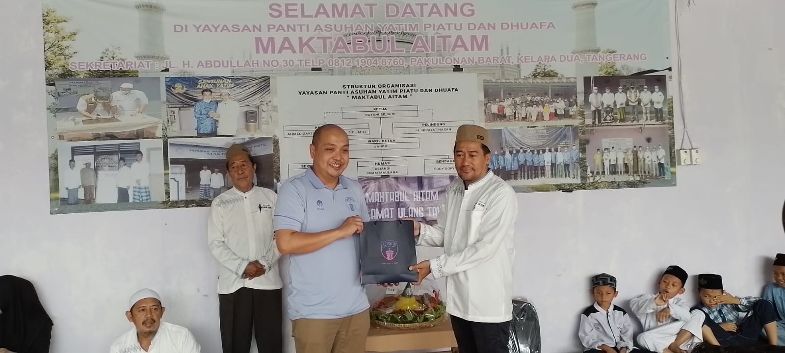 TANGERANG, WT – Manajemen dan pemain Persita Tangerang berbagi kebahagian bersama puluhan anak yatim piatu Yayasan Maktabul Aitam, Kelurahan Pakulonan Barat, Kecamatan Kelapa Dua, Kabupaten Tangerang pada Kamis, (7/9/2023).