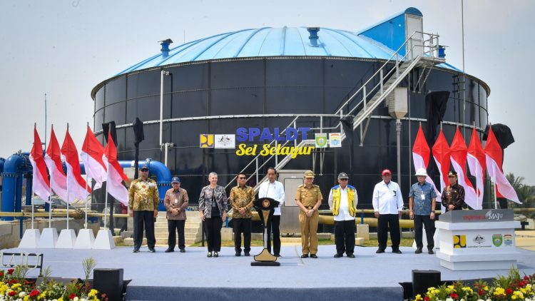 Presiden Joko Widodo meresmikan Sistem Pengelolaan Air Limbah Domestik Terpusat (SPALDT) Sei Selayur, Kota Palembang, Provinsi Sumatra Selatan, pada Kamis, 26 Oktober 2023.