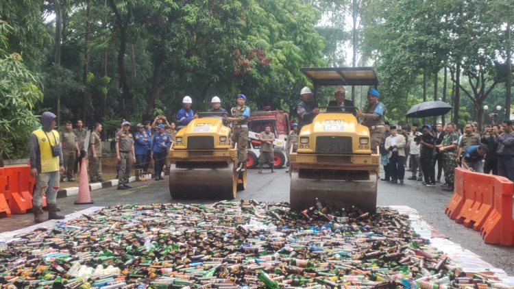 TANGERANG, WT – Sebanyak 2.588 minuman keras (miras) dari berbagai merek dimusnahkan dimomen hari jadi Kota Tangerang.