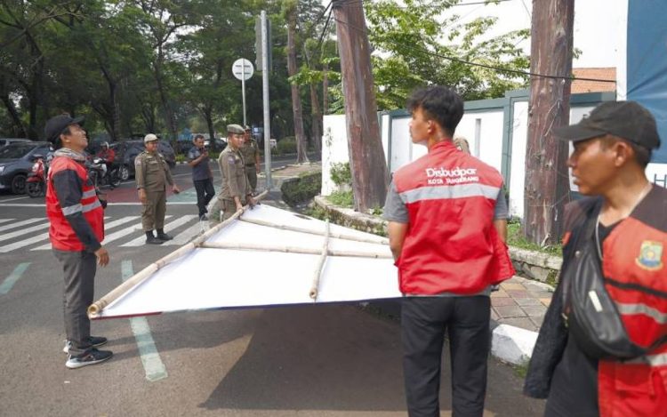 TANGERANG, WT – Satuan Polisi Pamong Praja (Satpol PP) bersama seluruh Tramtib se-kecamatan di Kota Tangerang menertibkan reklame-reklame liar.