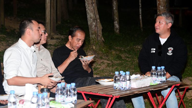 Usai meninjau sejumlah progres pembangunan di Ibu Kota Nusantara (IKN), Presiden Joko Widodo didampingi Ibu Iriana Joko Widodo mengajak para penggiat seni dan pemengaruh (influencer) Tanah Air makan malam bersama di kawasan glamping IKN, pada Minggu malam, 28 Juli 2024. Beragam menu yang disajikan antara lain nasi goreng, kambing guling, bakso, mie ayam, mie godok, sushi, hingga burger.