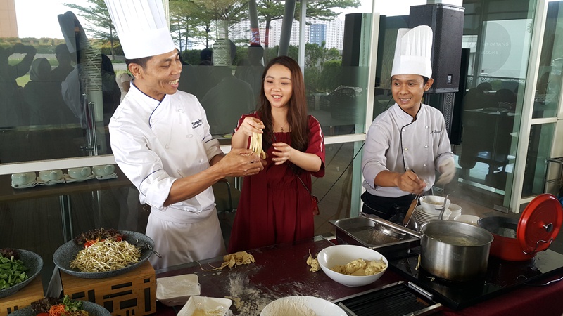 TANGERANG- Imlek bagi umat Tionghoa tidak sekadar perayaan tahun baru. Tapi juga moment yang dapat mengeratkan kebersamaan antarkeluarga. Untuk menghangatkan kebersamaan saat berkumpul, wajib tersedia menu khas Imlek. Salah satunya Salad Yee Sang yang secara khsusus disajikan Novotel Tangerang pada moment Imlek.