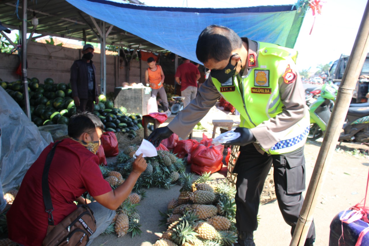 “Ayo selalu pakai masker ya. Dengan menggunakan masker, akan terlindungi dari penularan Covid-19. Maskermu melindungi aku dan maskerku melindungi kamu,” kata Wakapolda, saat berdialog dengan para pedagang, Selasa,(27/7/2021).
