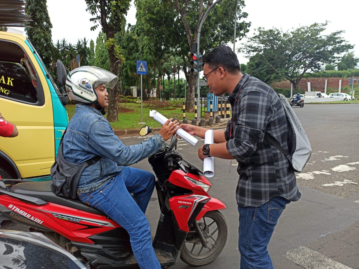 Satu per satu, pengendara diberikan bingkisan tersebut dan mendapat respone baik dari pengendara motor.