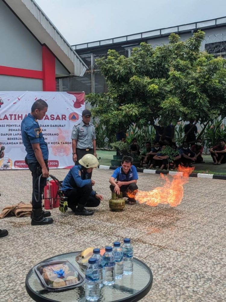 Kali ini, kegiatan berlangsung di dapur Lapas Kelas I Tangerang, di mana peserta diberikan edukasi mengenai cara memadamkan api dengan metode tradisional menggunakan karung basah, memadamkan api dengan Alat Pemadam Api Ringan (APAR) secara modern, serta bagaimana melakukan evakuasi mandiri saat terjadi gempa bumi.