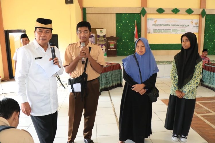 TANGERANG, WT – Sekretaris Daerah Kabupaten Tangerang, Moch. Maesyal Rasyid, menghadiri kegiatan pendistribusian Zakat Infaq dan Shodaqoh (ZIS) bulan Ramadan 1445 H/ 2024 M yang diselenggarakan oleh Badan Amil Zakat Nasional (Baznas) Kabupaten Tangerang di Kecamatan Sukamulya pada Rabu, (27/3/2024).