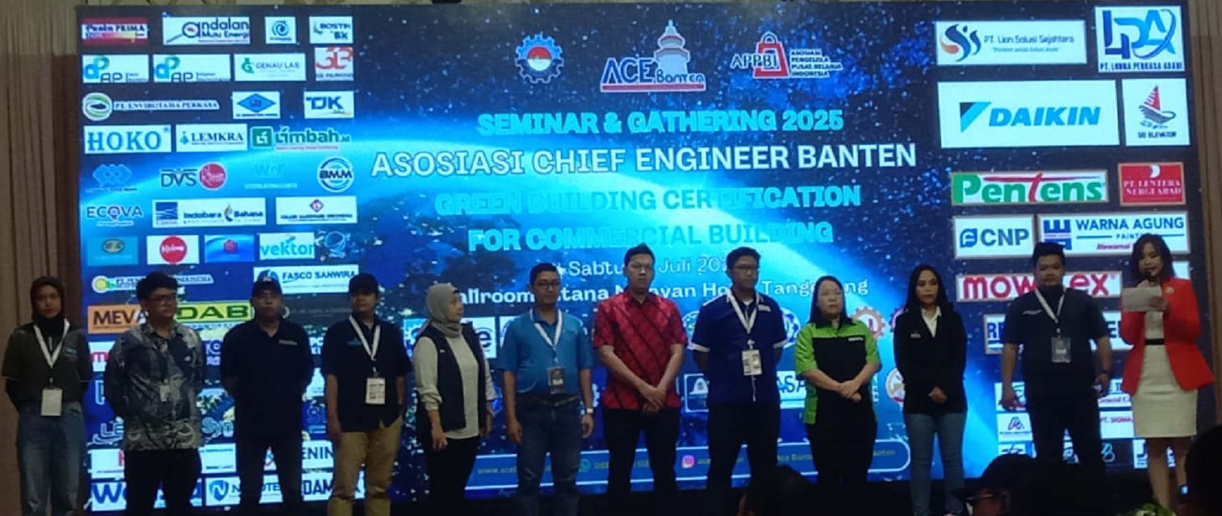 TANGERANG, WT – Asosiasi Chief Engineer (ACE) Banten mengadakan seminar dan gathering bertema “Green Building Certification for Commercial Building” pada Sabtu, 19 Juli 2025 di Istana Nelayan, Kota Tangerang. Kegiatan ini dihadiri sekitar 350 peserta yang terdiri dari pengurus ACE Banten, perwakilan dari 18 provinsi, pengurus pusat, serta puluhan vendor pendukung acara.