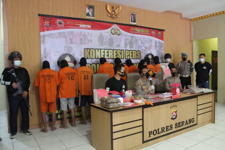 “Dari semua tersangka AB, KM, AN, RM, RP, AP dan MR, kita berhasil amankan dari 4 TKP yang berbeda, dari wilayah Kabupaten Serang di Kecamatan Anyer, Kibin dan dua TKP dari hasil pengembangan di wilayah Sumatera Utara,” kata Kapolres Serang AKBP Yudha Satria, didampngi Kasat Narkoba Polres Serang Iptu Michael K Tendayu dan Kasie Humas Polres Serang, Jum’at (24/9/2021).