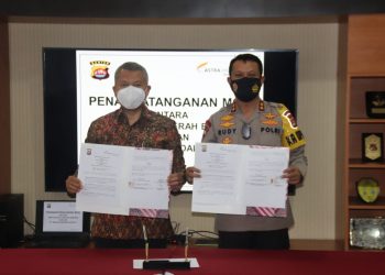 SERANG - Polda Banten tandatangani Memorandum of Understanding (MoU) dengan PT Marga Mandala Sakti tentang Integrasi CCTV yang dilakukan di ...