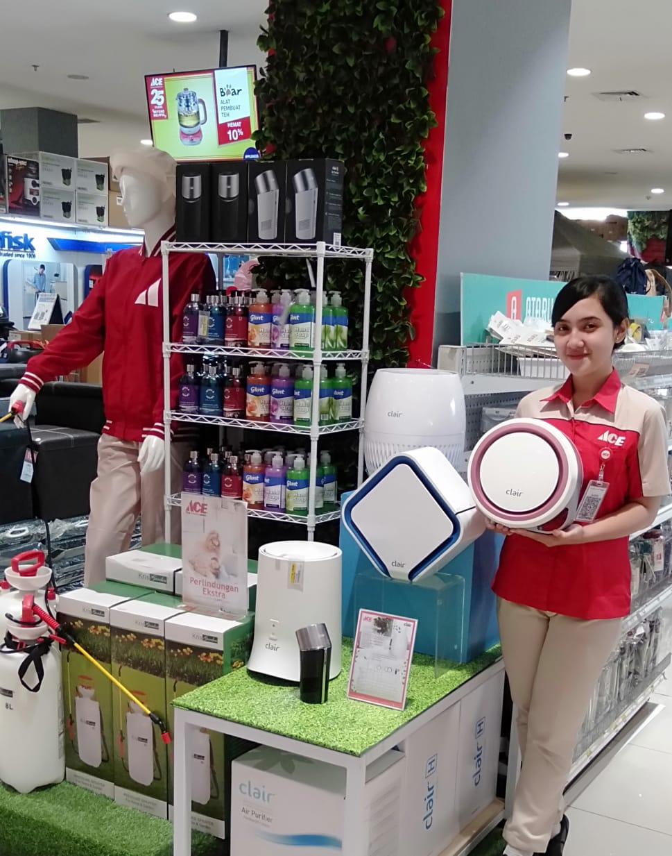 Kini Ace Hardware Living Plaza Bintaro menyediakan beragam alat untuk mencegah virus seperti mulai dari sabun cuci tangan, hingga penjernih udara Clair Cube Plus