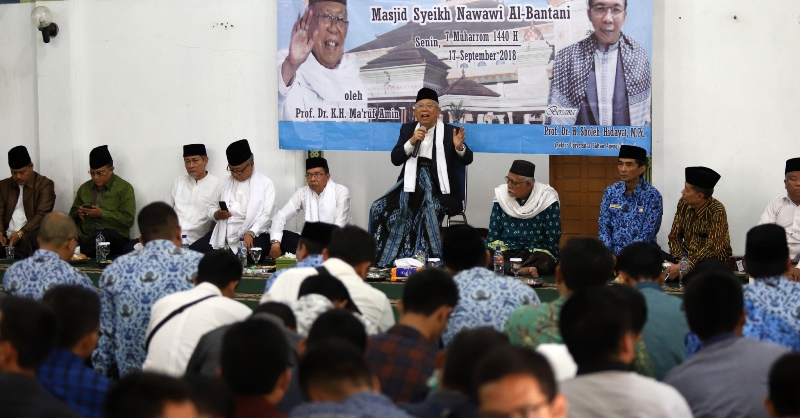 Hal itu disampaikan KH Ma’ruf Amin saat menjadi pengisi tausiah dalam peringatan Tahun Baru Islam 1440 Hijriyah dan Dies Natalies ke-37 Untirta di Masjid Syekh Nawawi Al-Bantani, Untirta, Senin (17/9).