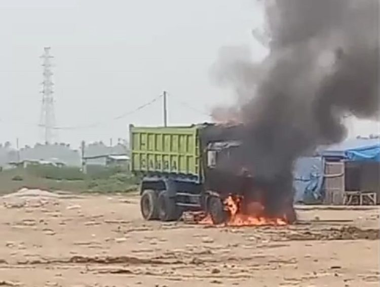 Truk tanah milik PT Duta dengan nomor polisi B 9304 KYW dibakar massa sekira pukul 12.30 WIB sebagai bentuk kemarahan warga atas pelanggaran aturan jam operasional truk yang terus berulang.