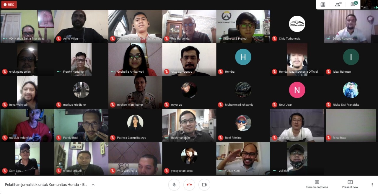 Pelatihan kali ini juga didukung narasumber dari jurnalis media nasional yang sudah berpengalaman di bidang media online dan konten kreatif di media sosial. Sebanyak sekitar 40 orang dari 24 komunitas pengguna mobil Honda di Indonesia ikut ambil bagian dalam pelatihan virtual yang berlangsung selama dua hari ini.