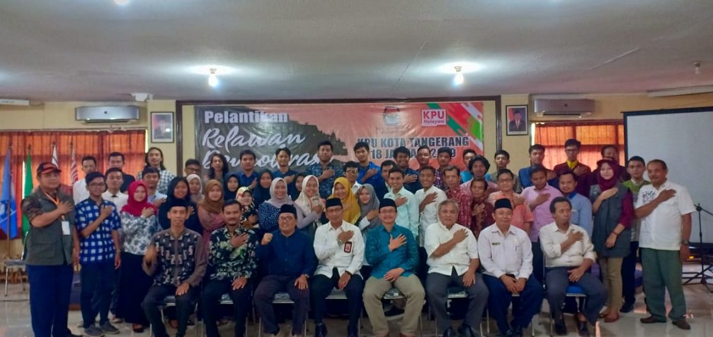 Tangerang – Komisi Pemilihan Umum (KPU) Kota Tangerang melantik 55 (lima puluh lima) orang Relawan Demokrasi di Aula Gedung KPU Kota Tangerang, Jumat (18/01/2019).