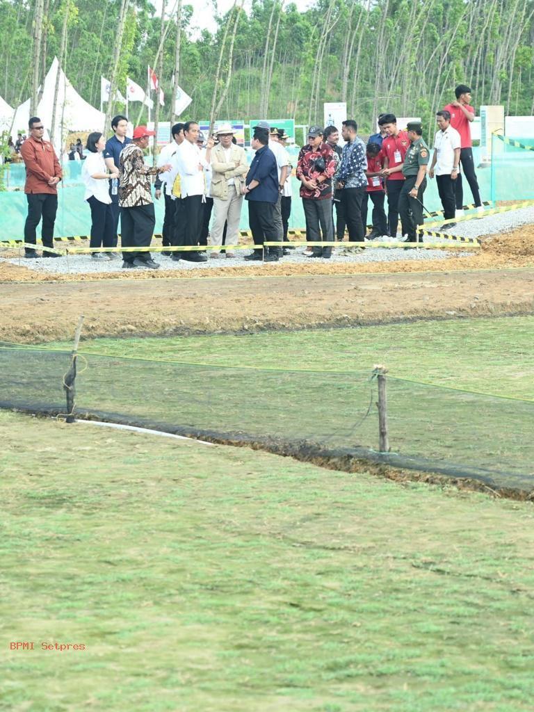 Turut mendampingi Presiden dalam peninjauan tersebut adalah Menteri Pekerjaan Umum dan Perumahan Rakyat Basuki Hadimuljono, Menteri Agraria dan Tata Ruang/Kepala Badan Pertanahan Nasional Hadi Tjahjanto, Anggota Dewan Pertimbangan Presiden Gandi Sulistiyanto, Panglima TNI Jenderal Agus Subiyanto, Kapolri Jenderal Listyo Sigit Prabowo, Ketua Umum PSSI Erick Thohir, Kepala Otorita IKN Bambang Susantono, Pj. Gubernur Kalimantan Timur Akmal Malik, Pj. Bupati Penajam Paser Utara Makmur Marbun, dan Kurator Pembangunan IKN Ridwan Kamil.