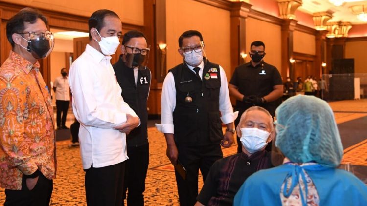 Presiden Jokowi Tinjau Vaksinasi Massal untuk Lansia dan Pengemudi Ojek Daring di GOR Pajajaran Bogor