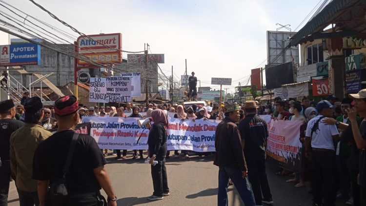 “Karena ini akses warga yang merupakan sentra ekonomi juga buat masyarakat,” kata salah seorang pendemo, Senan.