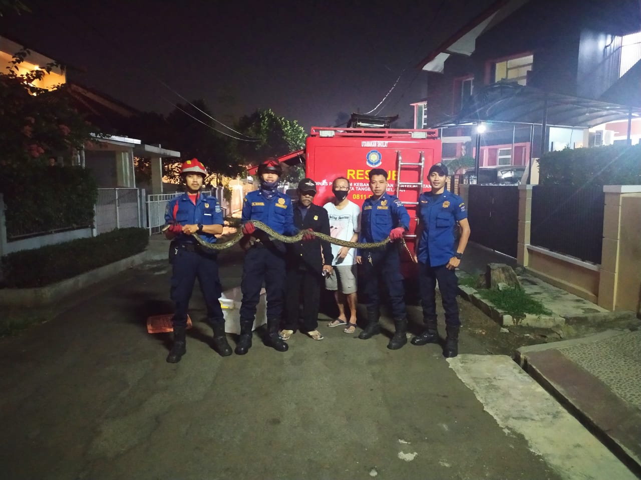 Warga akhirnya melaporkan kejadian tersebut ke pihak kemanan perumahan. Namun, karena tidak bisa menangkapnya, pihak keamanan memanggil tim rescue Dinas Pemadam Kebakaran dan Penyelamatan Tangsel pada pukul 01.15 WIB.